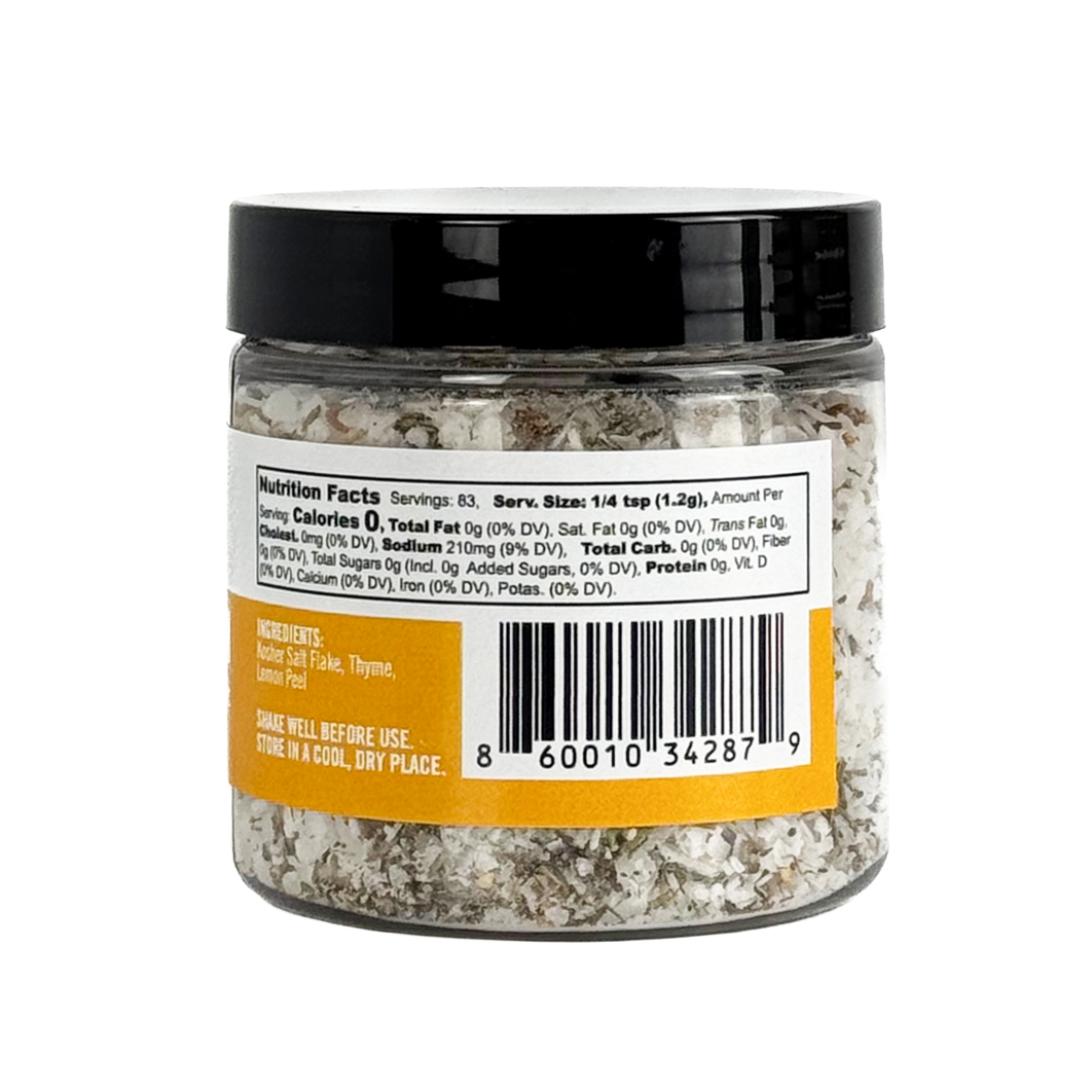 Our Thyme & Lemon Finishing Salt melds zesty lemon and earthy thyme together in a crisp, aromatic salt that wakes up every bite. Fresh, herbaceous, and ideal for chicken, seafood, potatoes, and Mediterranean-leaning dishes.