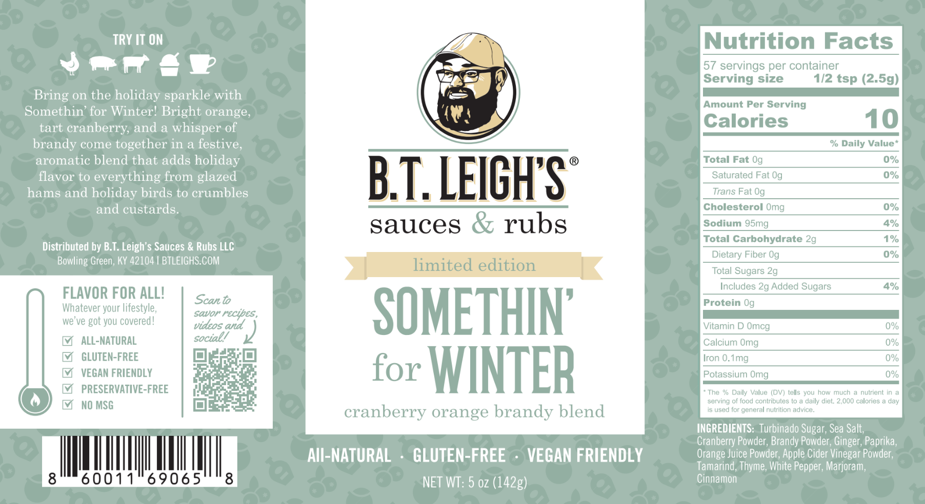 Wrap your taste buds in cozy holiday flavor with Somethin’ for Winter v2.0 – Cranberry Orange Brandy Seasoning. Sweet cranberry, bright orange, and smooth brandy come together with warm spices and a hint of thyme for a blend that tastes like the holidays in every bite. It’s festive, flavorful, and only here for a limited time.